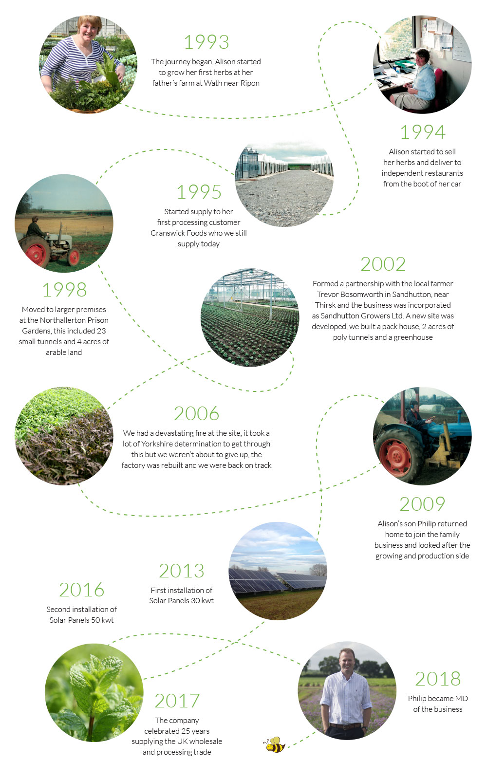 Working as a Cordon Bleu Chef in her family restaurant, our founder, Alison Dodd, realised that she couldn’t always get the great quality and variety of herbs she needed, therefore soon recognised the need for a good supply of fresh herbs to the catering industry, and this is how Herbs Unlimited began.